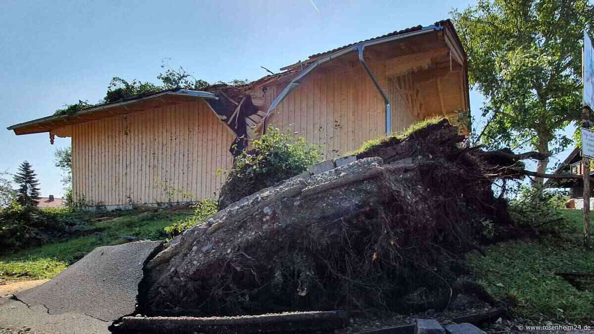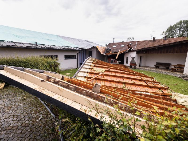 Unwetter Halfing : Schäden nach Unwetter in Bayern _ Unwetter mit starkregen und orkanartigen böen haben am mittwoch im südlichen oberbayern dächer abgedeckt, gebäude beschädigt und straßen besonders die gemeinde halfing sei betroffen.